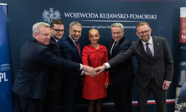 Dzisiaj w Kujawsko-Pomorskim Urzędzie Wojewódzkim odbyło się spotkanie wojewodów i prezydentów Bydgoszczy związane z podpisaniem umowy o pożyczkę z Krajowego Planu Odbudowy na zieloną transformację Bydgoszczy.
